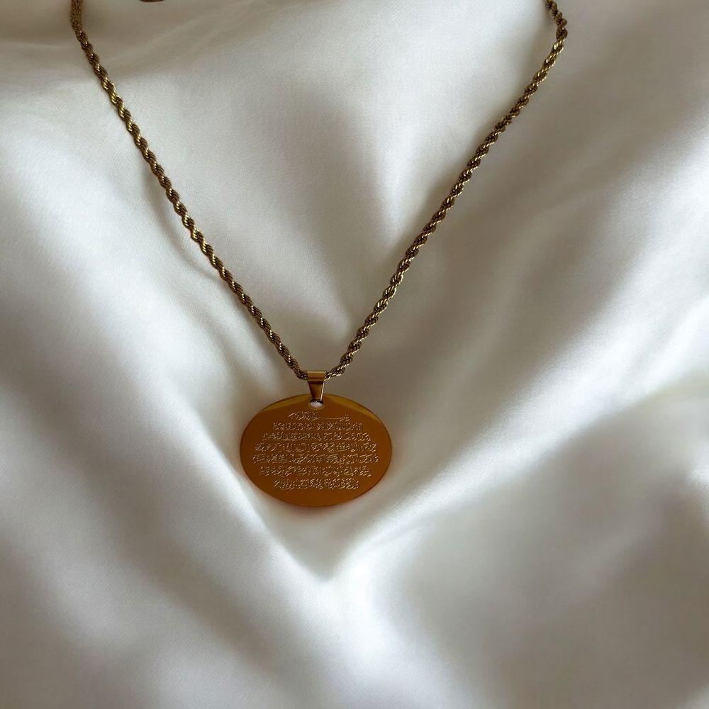 - Ayet: Kolye üzerinde yer alan Ayetel Kürsi, manevi derinliği ve koruyucu özelliği ile bilinen kutsal bir ayettir.