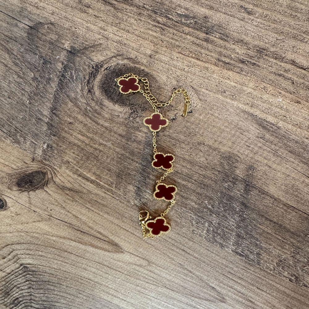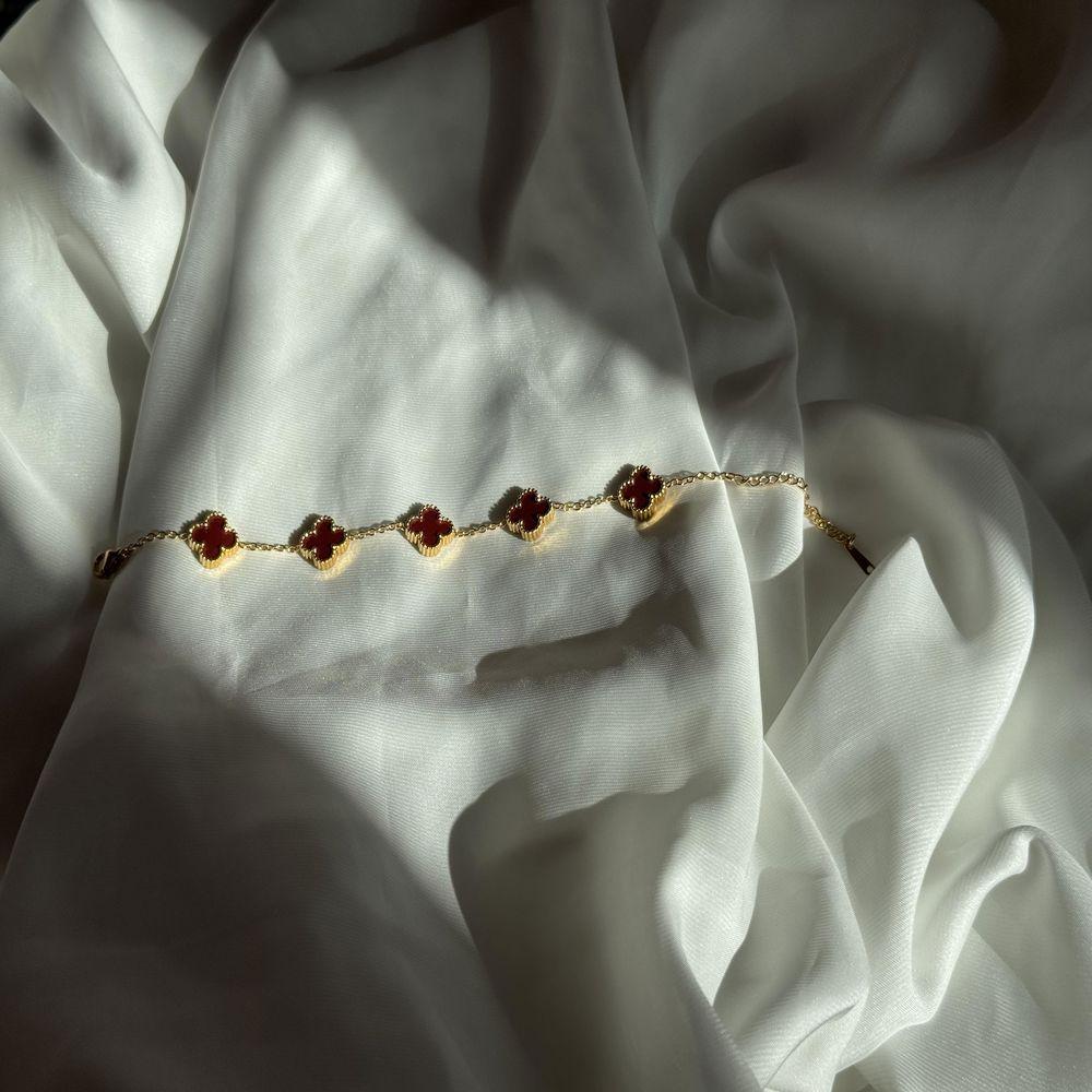 Gold Bordo Taşlı Van Cleef Bileklik