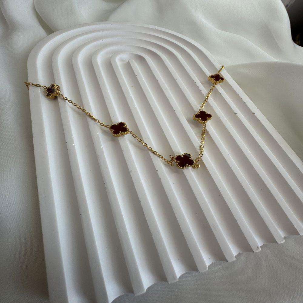 Gold Bordo Taşlı Van Cleef Kolye, sadece bir mücevher değil, aynı zamanda stilinizi yansıtan bir ifade aracıdır. Bu zarif parça, kendinize ya da sevdiklerinize hediye etmek için mükemmel bir seçimdir. Van Cleef & Arpels'in zarafetini ve lüksünü temsil eden bu kolye ile her anınız daha özel hale gelecek.