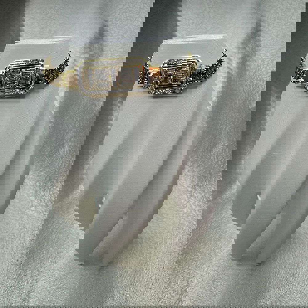 Gold renk baget detaylı çelik bileklik, özel bir tasarıma sahip olan lüks bir aksesuardır. Kaliteli malzemelerle titizlikle üretilmiş olan bu bileklik, her tarza ve kıyafete uyum sağlamak için tasarlanmıştır.