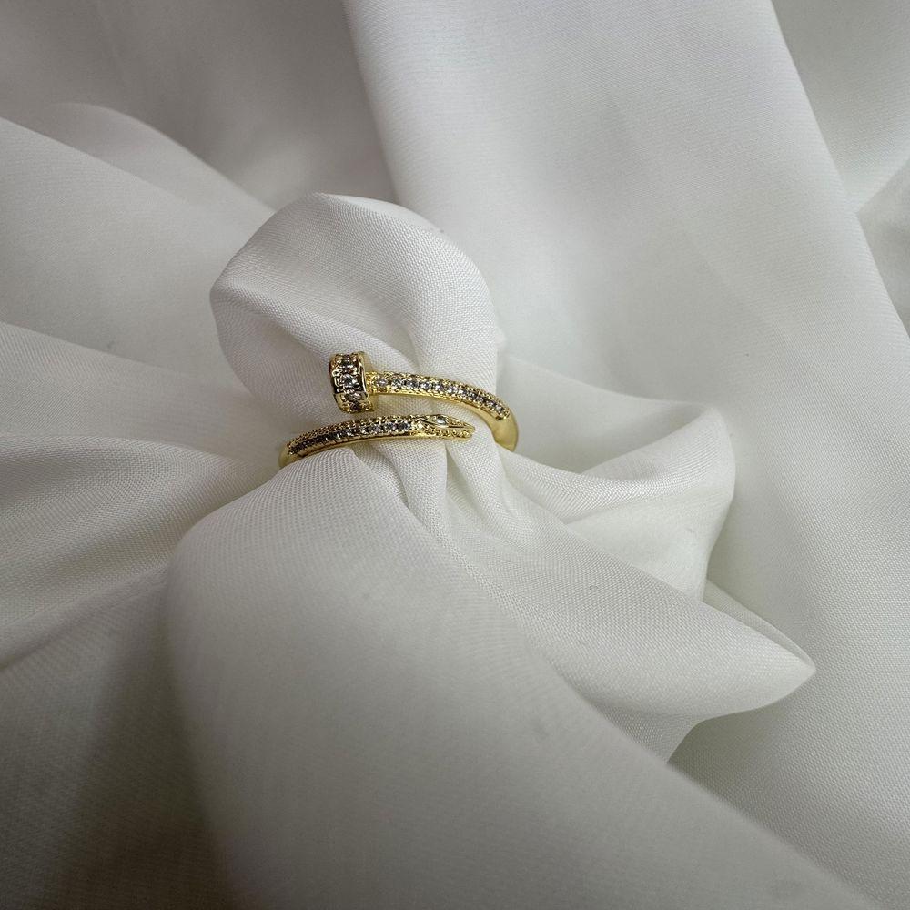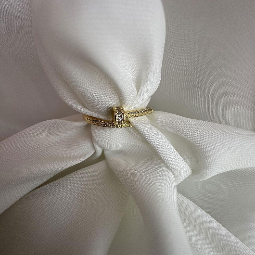 Gold Zirkon Taşlı Çivi Model Ayarlanabilir Çelik Yüzük